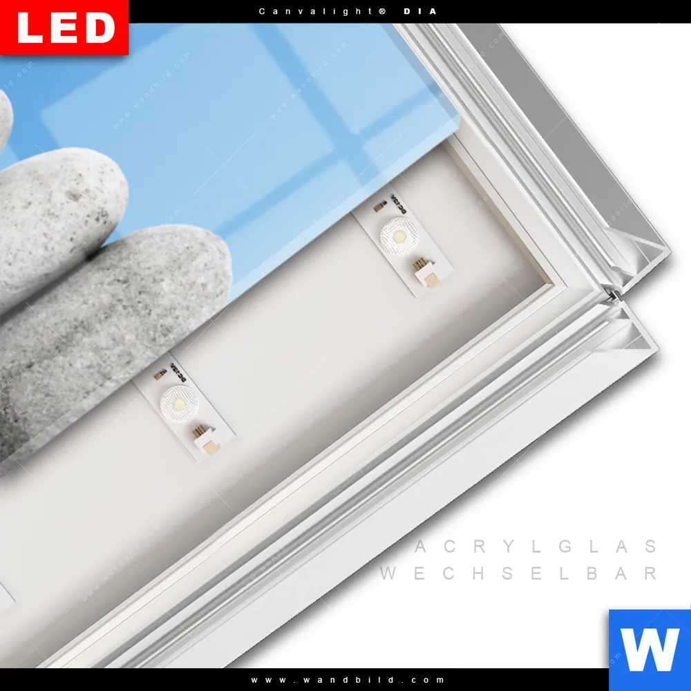 LED-Glasbild mit austauschbarem Acrylglas-Druck (Wechselbild)