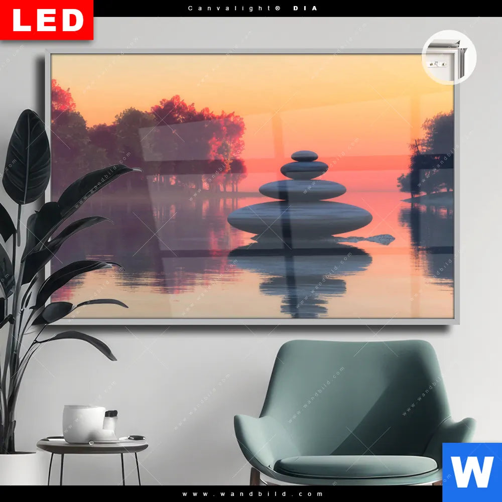 Canvalight® DIA Leuchtbild | Zen Steine & Sonnenuntergang | Querformat
