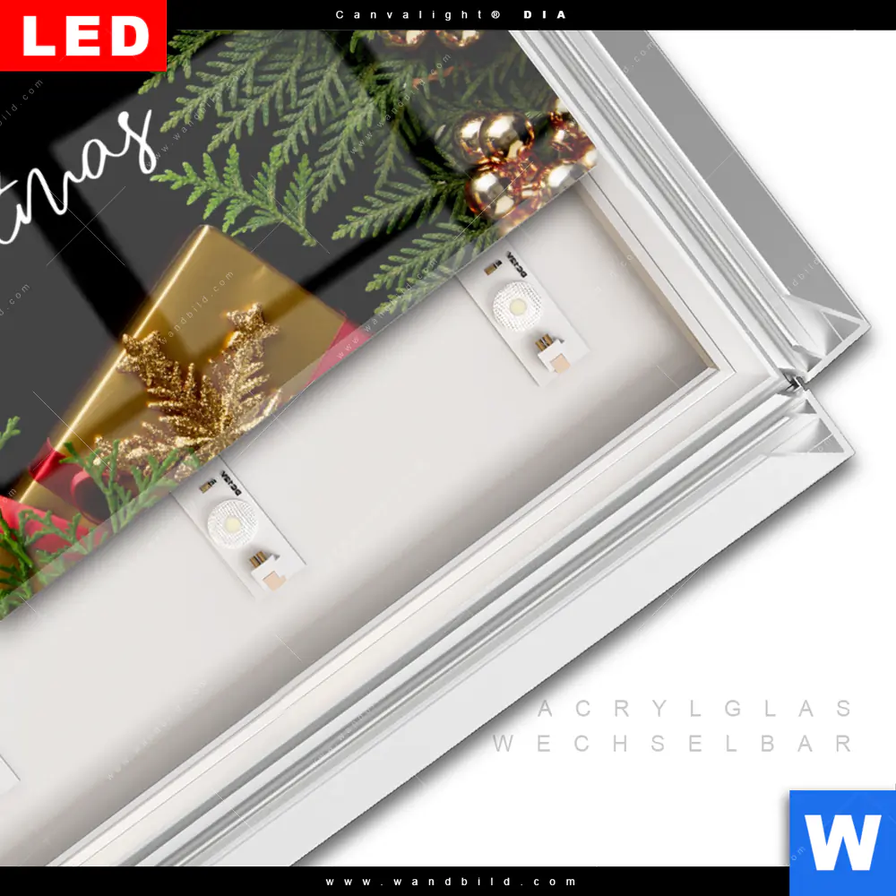 LED-Glasbild mit austauschbarem Acrylglas-Druck (Wechselbild)