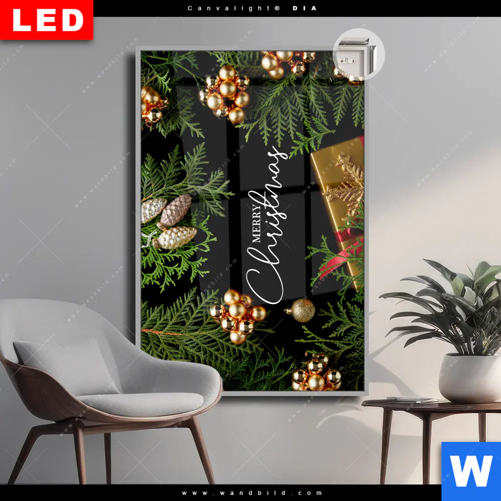 Canvalight® DIA Leuchtbild | Goldene Weihnachtsgrüße | Hochformat