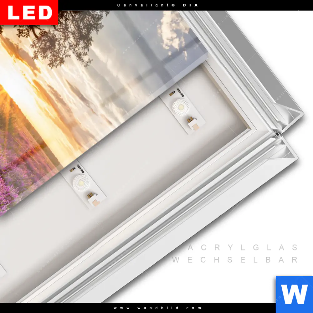 LED-Glasbild mit austauschbarem Acrylglas-Druck (Wechselbild)