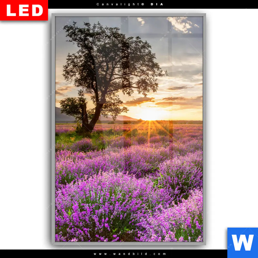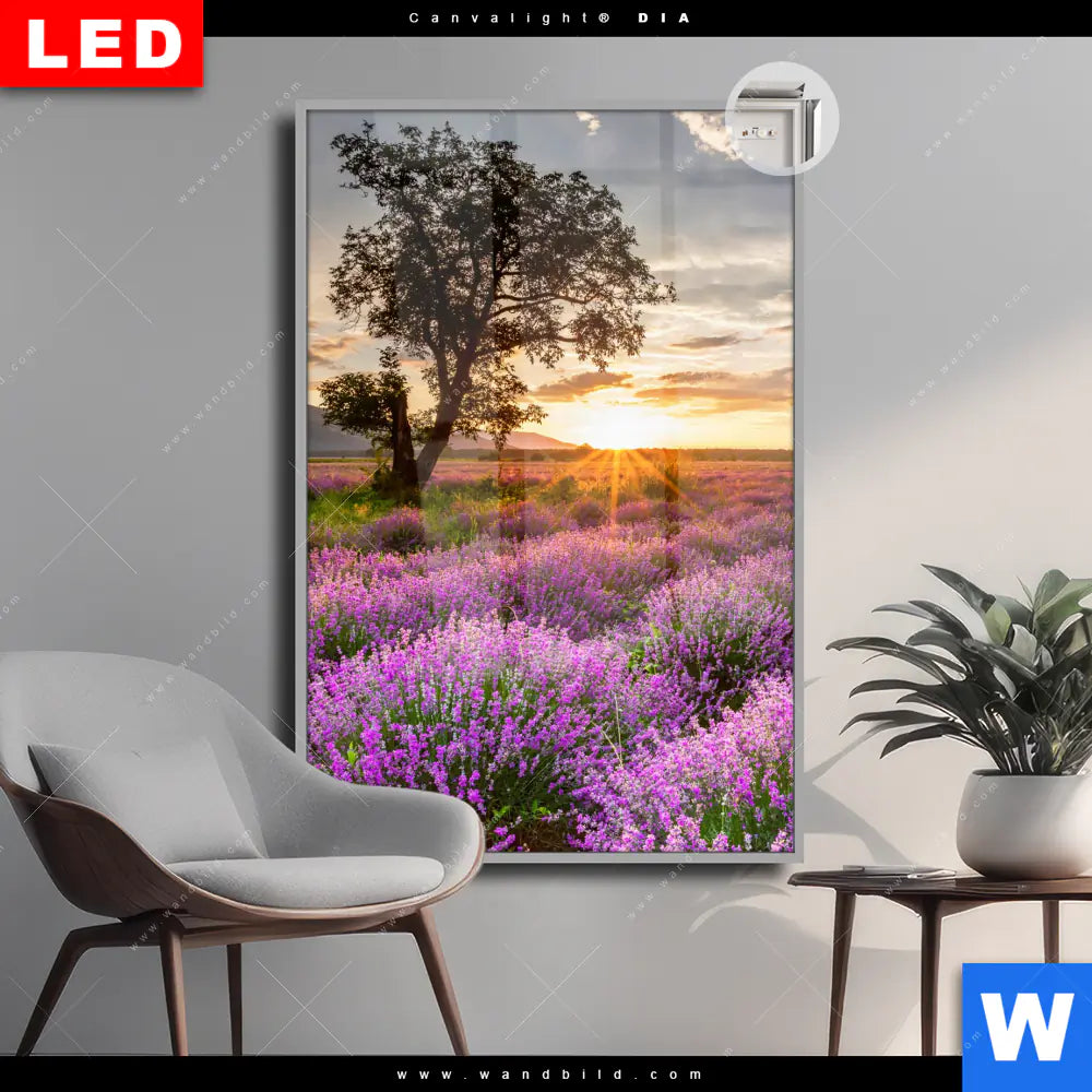 Canvalight® DIA Leuchtbild | Sonnenaufgang im Lavendelfeld | Hochformat