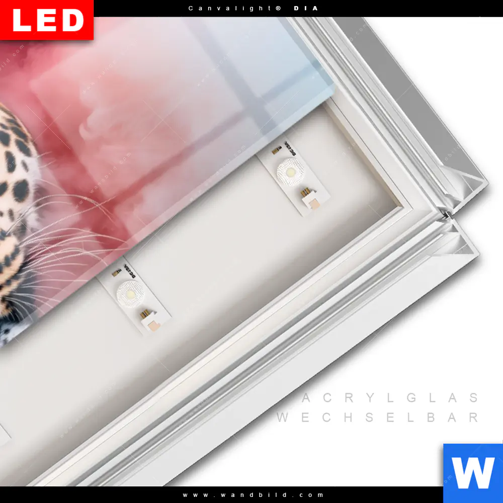 LED-Glasbild mit austauschbarem Acrylglas-Druck (Wechselbild)