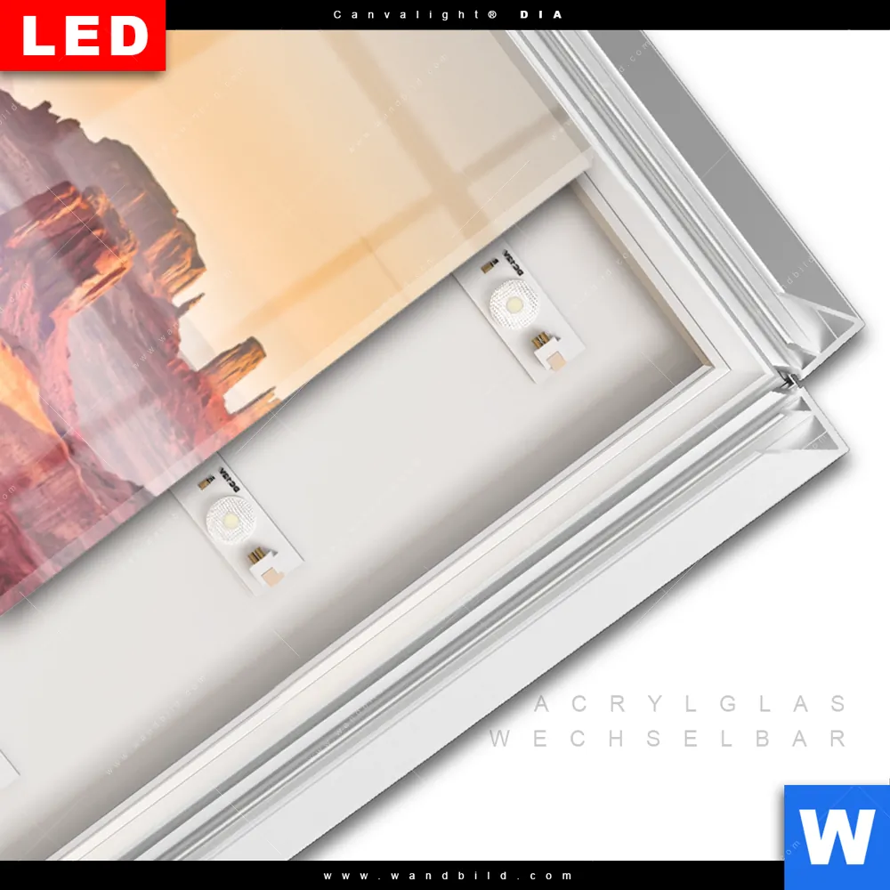 LED-Glasbild mit austauschbarem Acrylglas-Druck (Wechselbild)