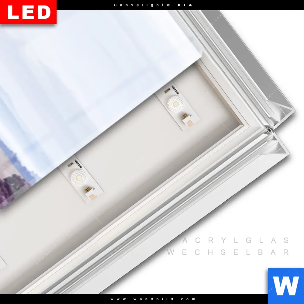 LED-Glasbild mit austauschbarem Acrylglas-Druck (Wechselbild)