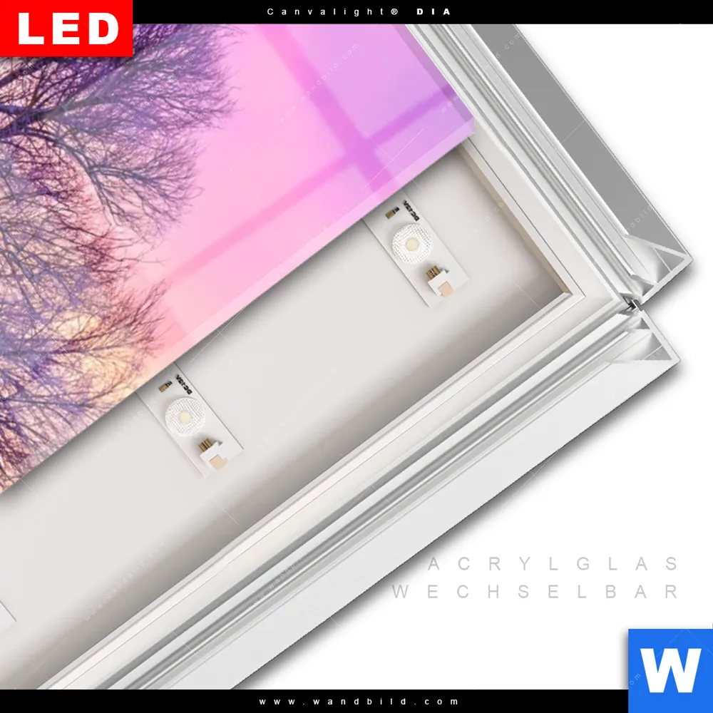LED-Glasbild mit austauschbarem Acrylglas-Druck (Wechselbild)