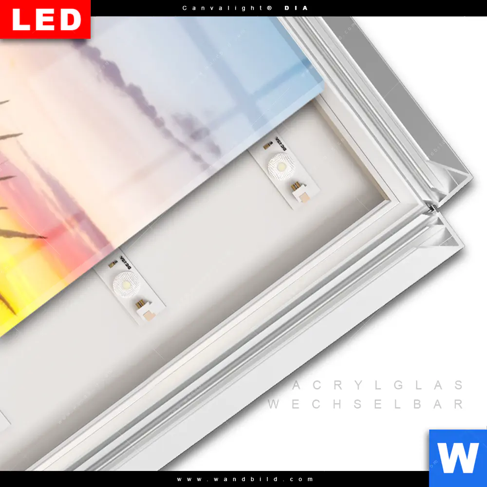 LED-Glasbild mit austauschbarem Acrylglas-Druck (Wechselbild)