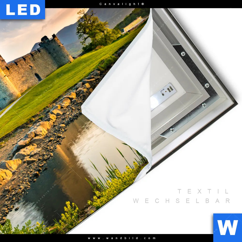 LED-Textilrahmen-Bild mit austauschbarem Architektur - Gebäude, Landschaften Textil-Druck (Wechselbild)