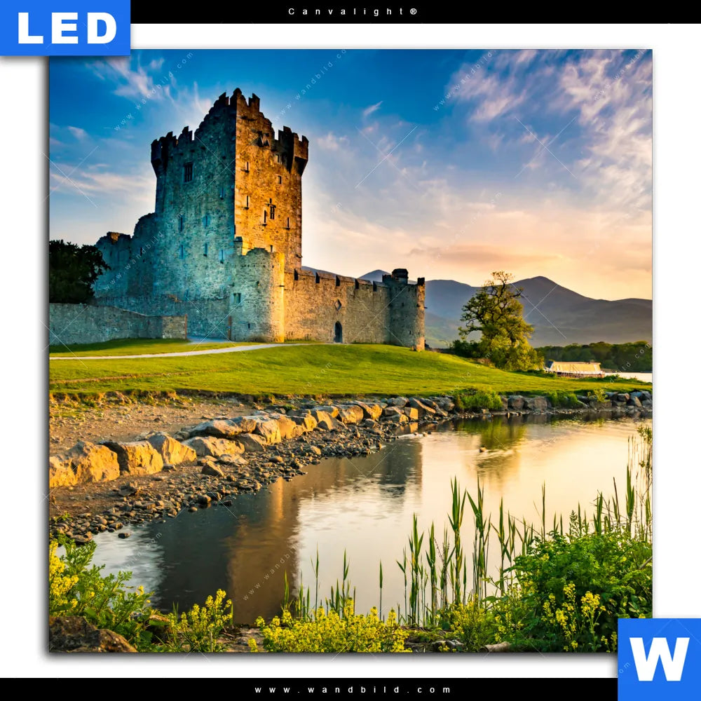 Canvalight® Leuchtbild | Alte Burg mit See | Quadrat
