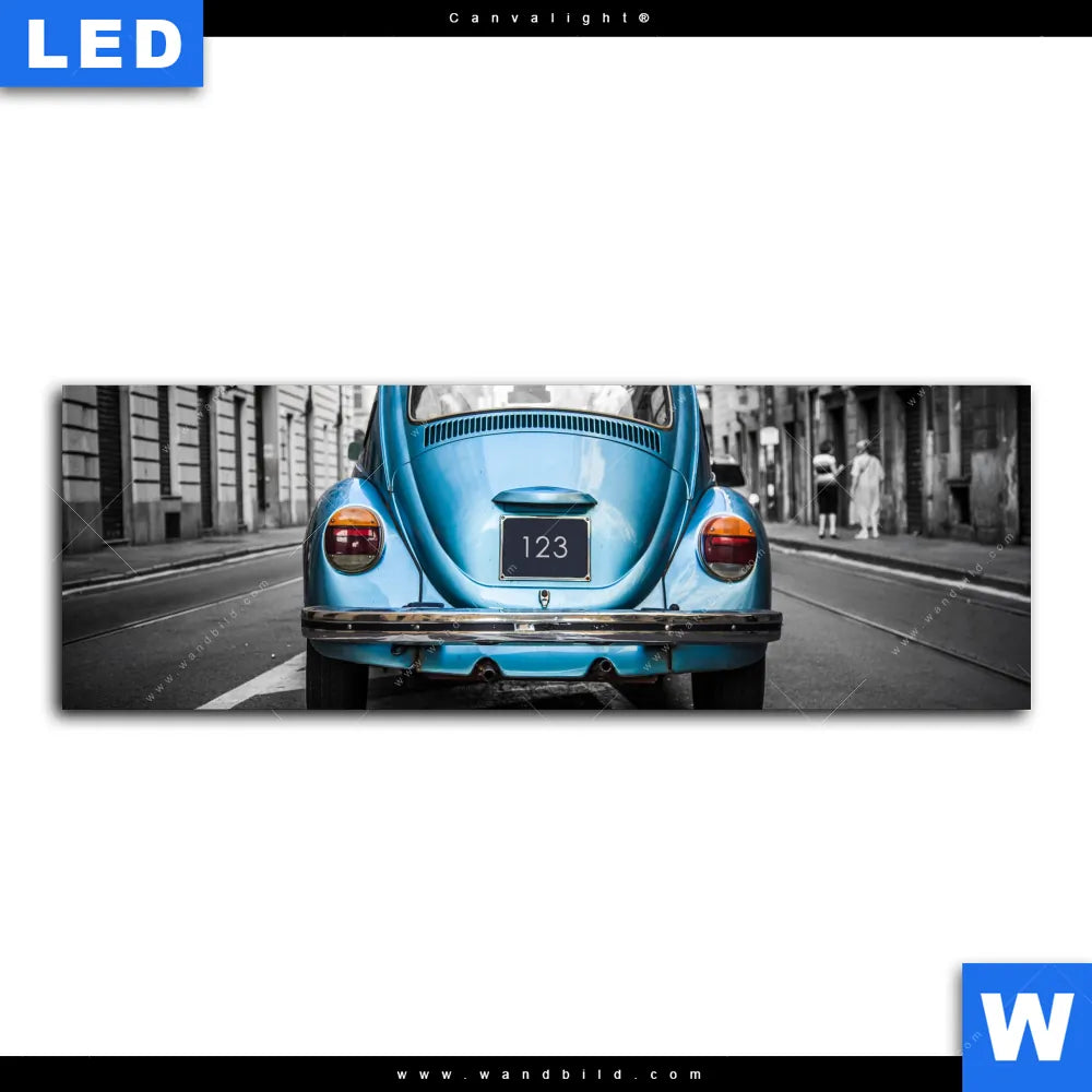 Canvalight® Leuchtbild | Blauer Oldtimer | Panorama