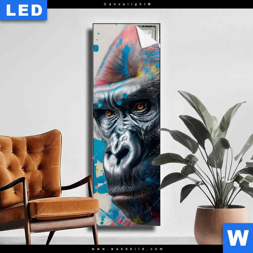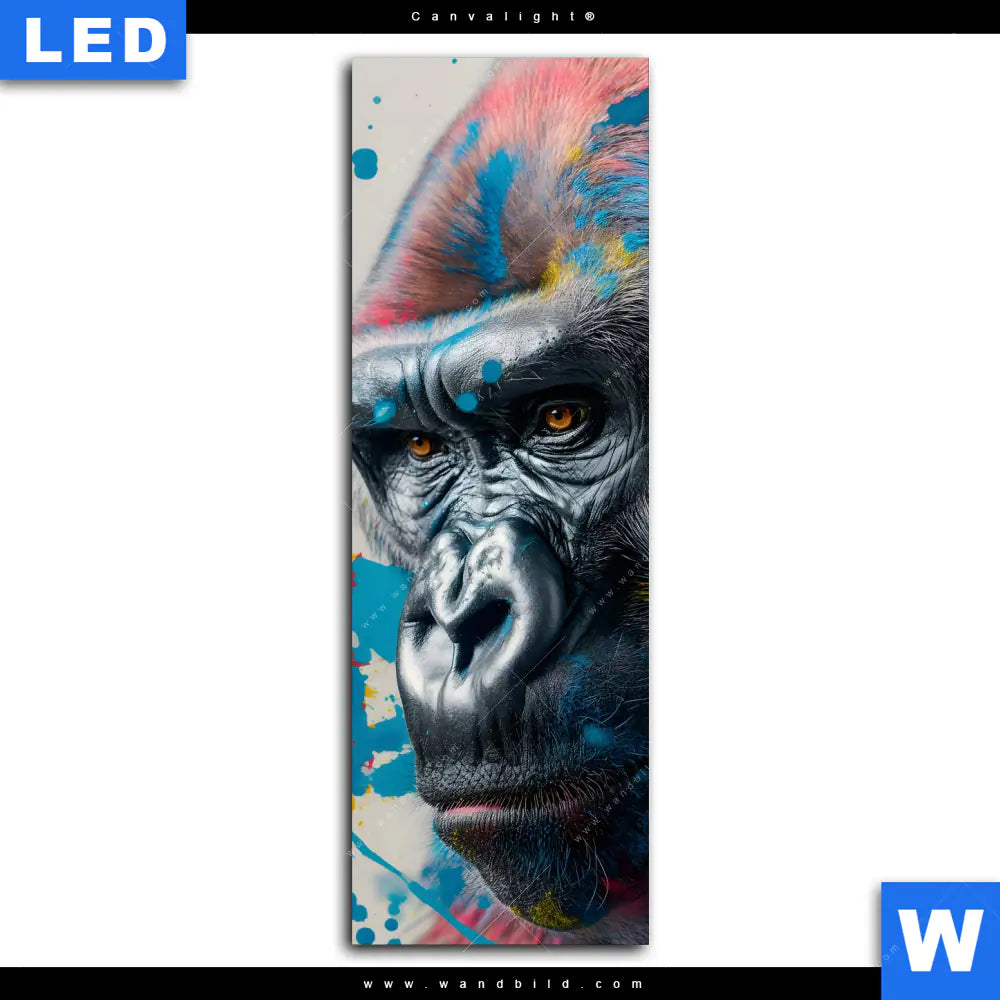 Canvalight® Leuchtbild | Bunter Gorilla mit Farbspritzern | Schmal