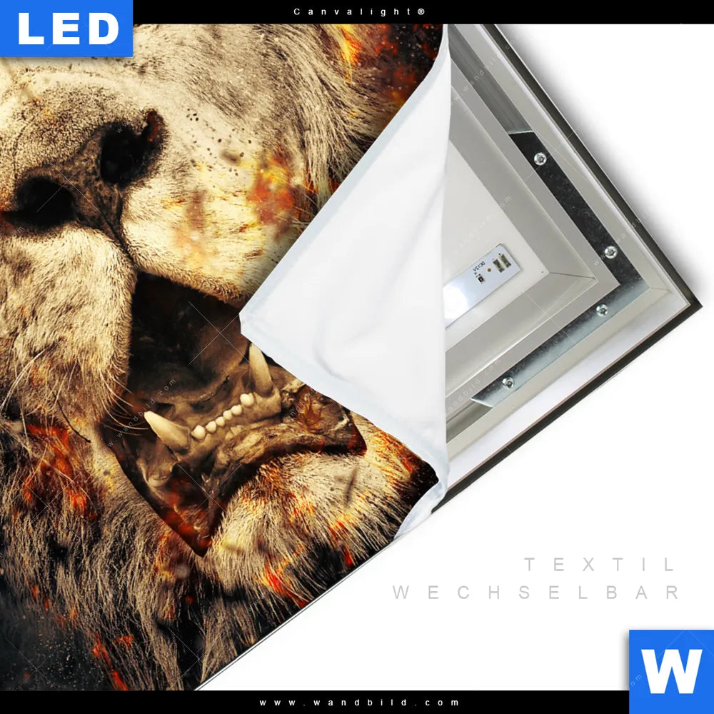 Canvalight® TEX Leuchtbild | Feuer Löwe | Quadrat