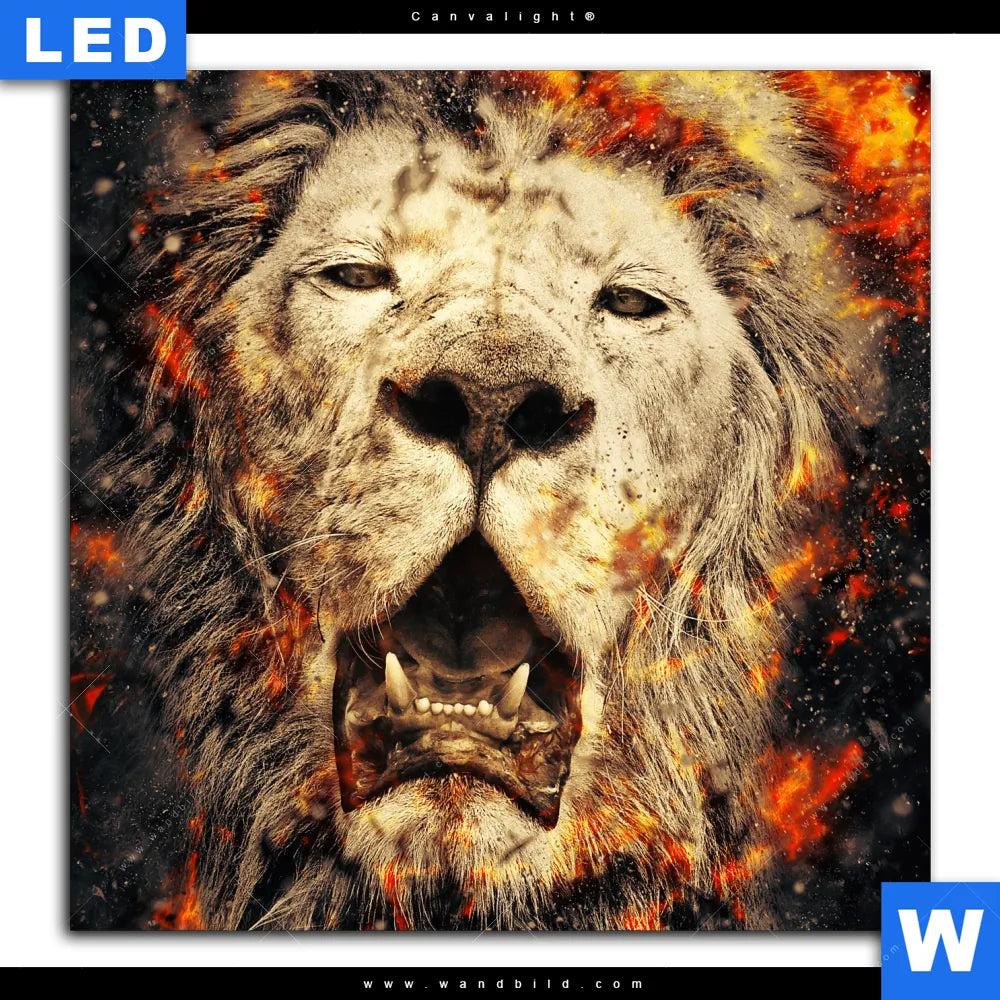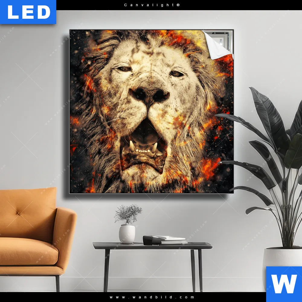 Canvalight® Leuchtbild | Feuer Löwe | Quadrat