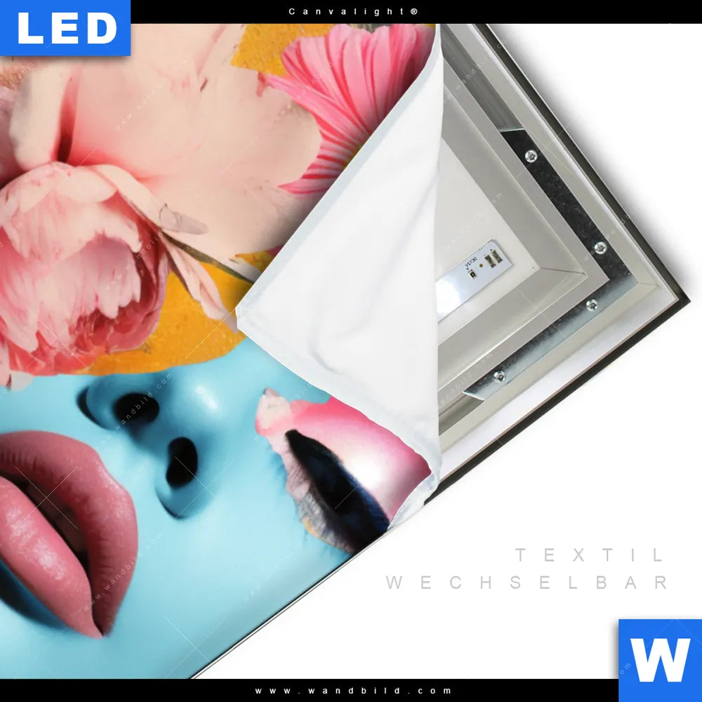 LED-Textilrahmen-Bild mit austauschbarem Porträts - Menschen, Blumen - Botanik Textil-Druck (Wechselbild)