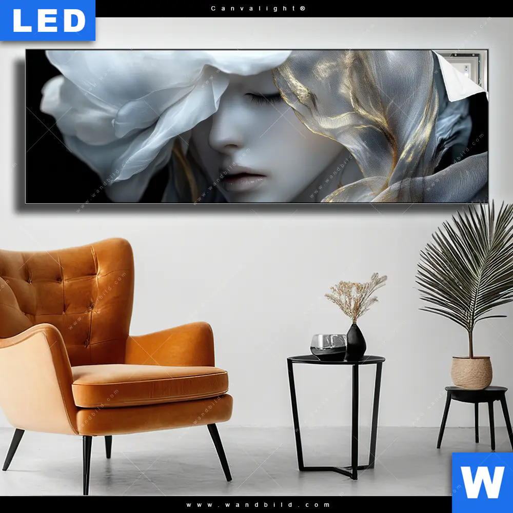 Canvalight® TEX Leuchtbild | Frau im Licht | Panorama