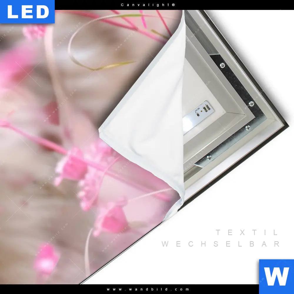 LED-Textilrahmen-Bild mit austauschbarem Tierwelt, Blumen - Botanik Textil-Druck (Wechselbild)