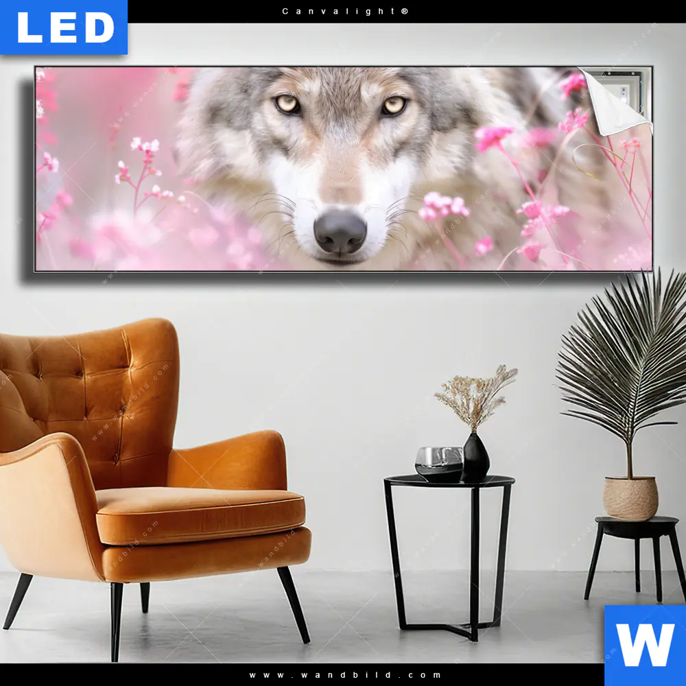 Canvalight® TEX Leuchtbild | Friedlicher Wolf | Panorama