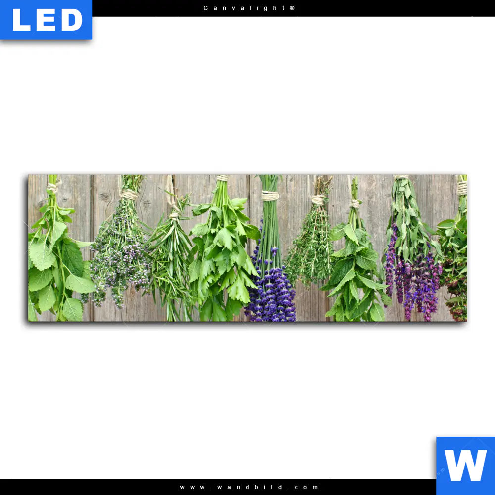 Canvalight® Leuchtbild | Frische Kräuter an Holzstange | Panorama