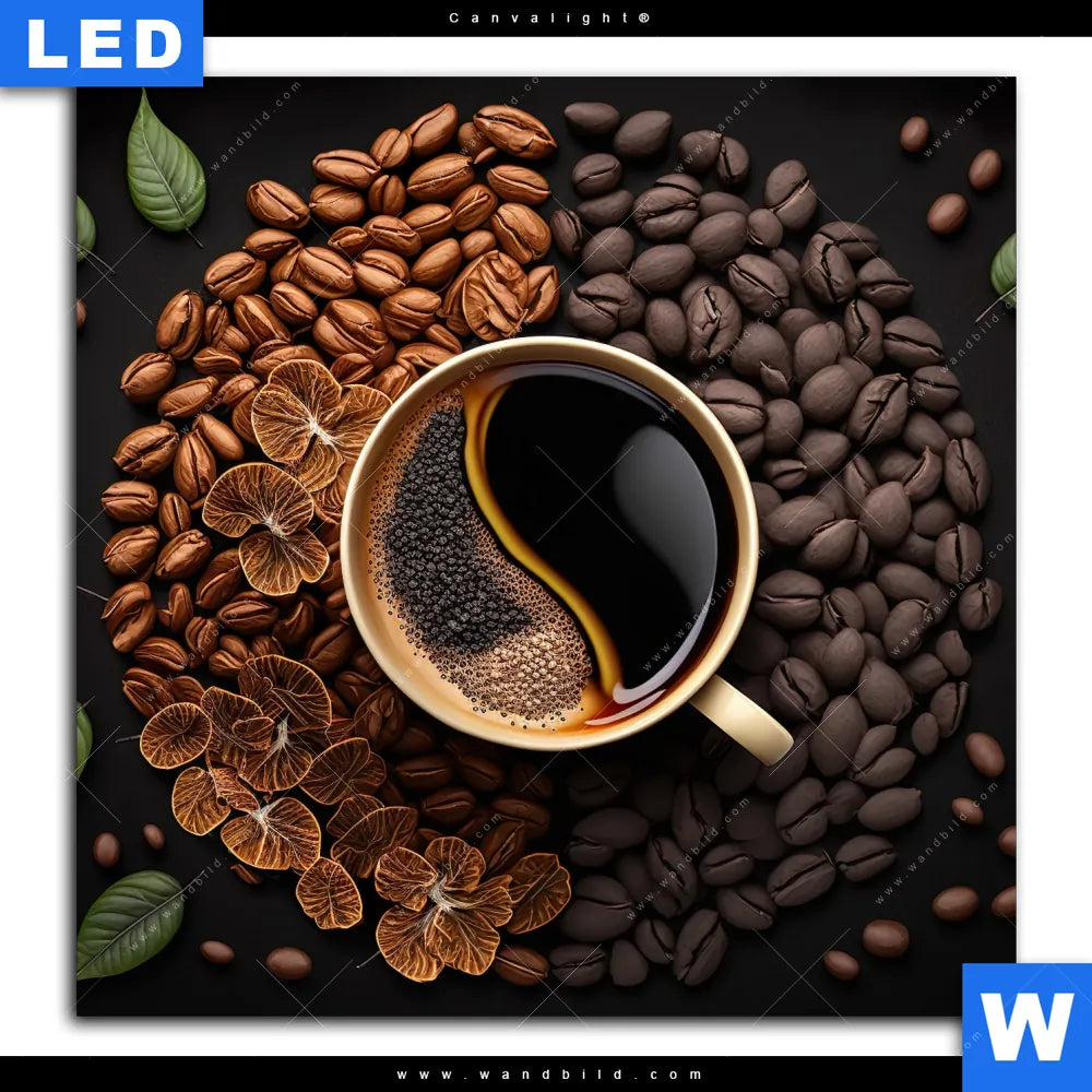 Canvalight® Leuchtbild | Kaffee mit Blattdekoration | Quadrat
