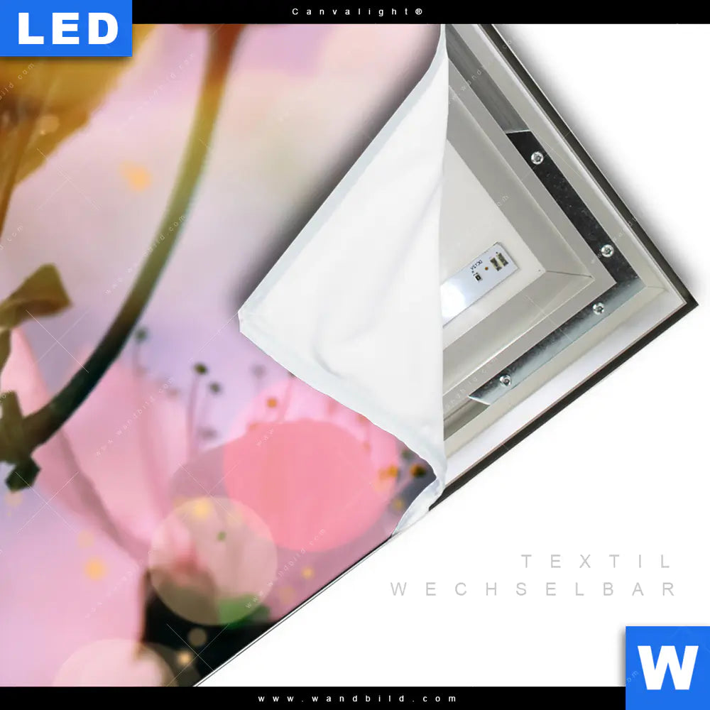 LED-Textilrahmen-Bild mit austauschbarem Blumen - Botanik Textil-Druck (Wechselbild)