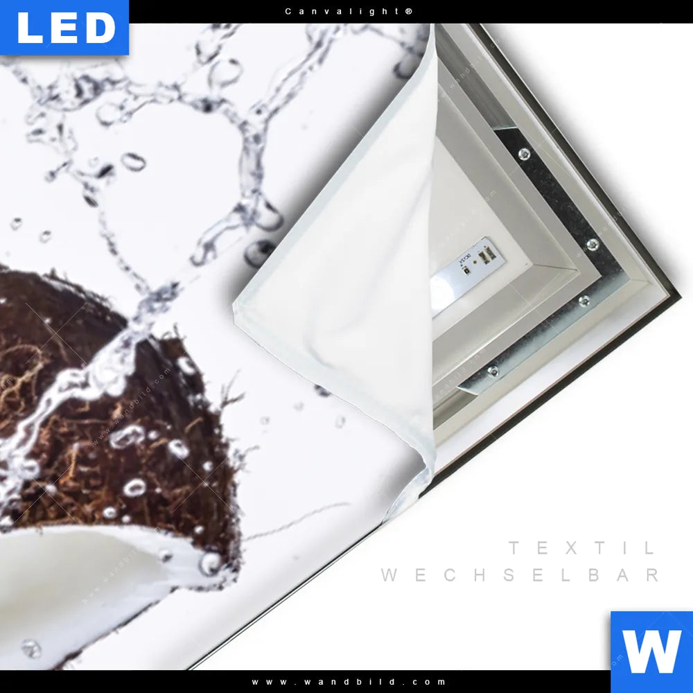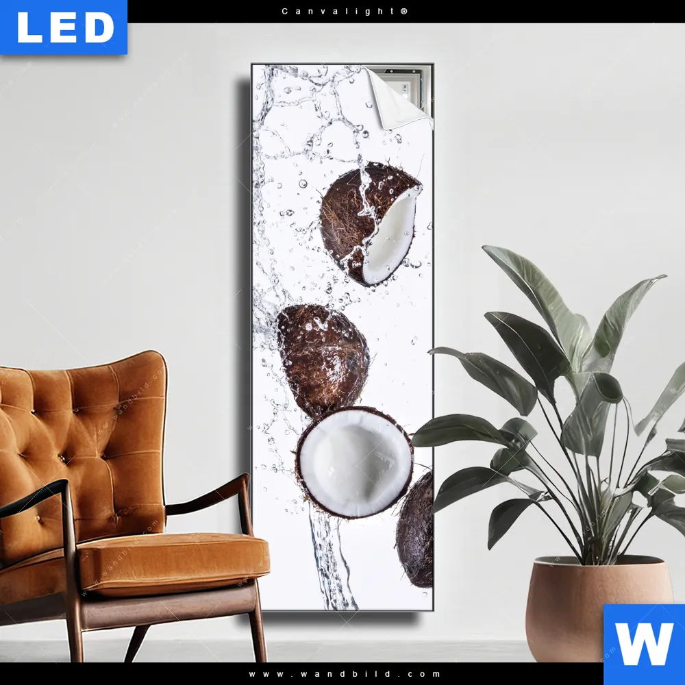 Canvalight® TEX Leuchtbild | Kokosnüsse mit Wasserspritzer | Schmal