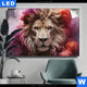 Canvalight® TEX Leuchtbild | Löwengesicht in buntem Rauch | Schmal