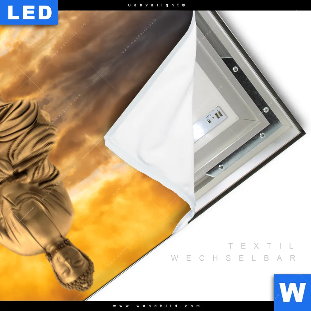 LED-Textilrahmen-Bild mit austauschbarem Buddha - Feng Shui Textil-Druck (Wechselbild)