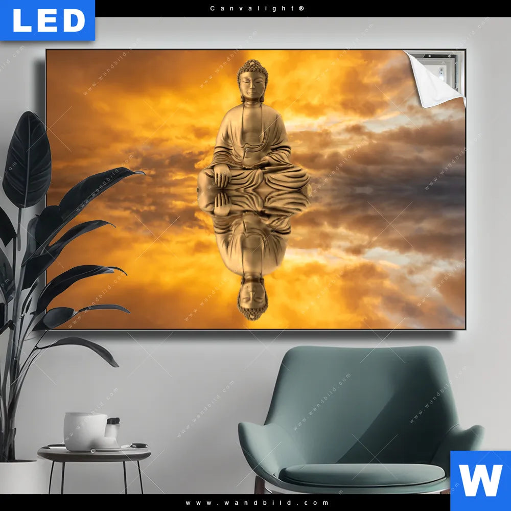 Canvalight® Leuchtbild | Meditierender Buddha am See | Querformat