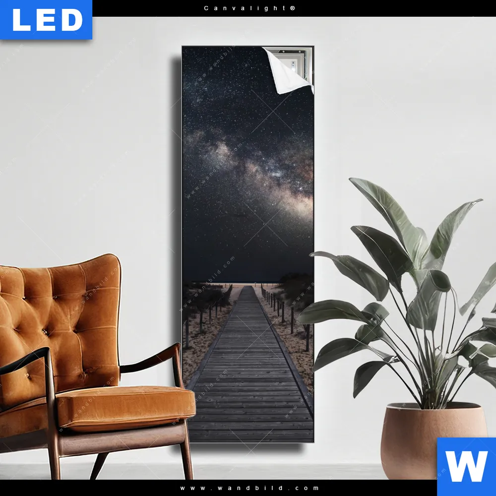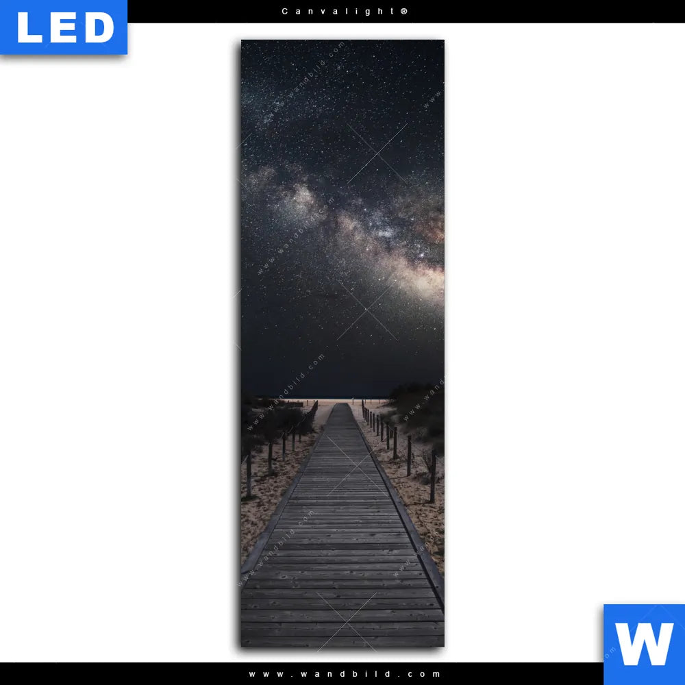 Canvalight® Leuchtbild | Milchstraße über einem Holzweg | Schmal