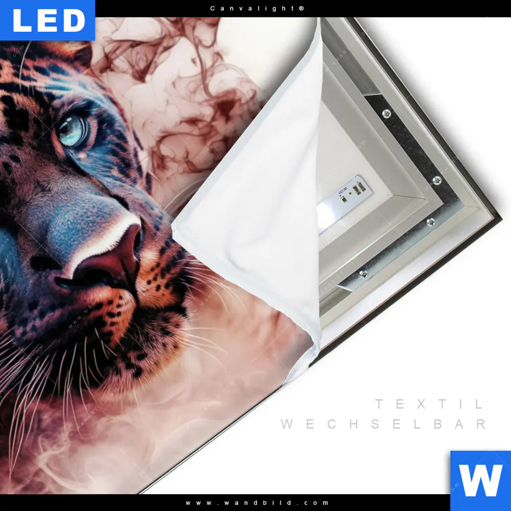 Canvalight® TEX Leuchtbild | Panther im Farbenspiel | Querformat
