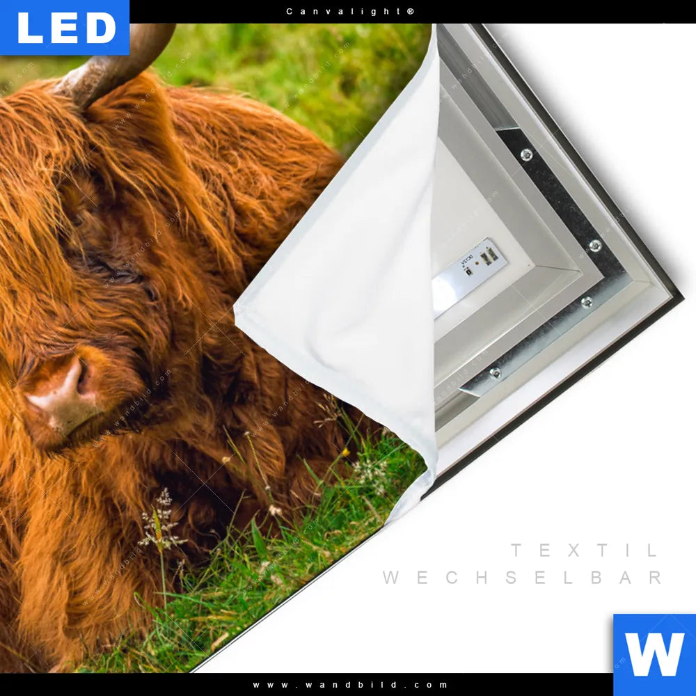 Canvalight® TEX Leuchtbild | Rind in den schottischen Highlands | Querformat