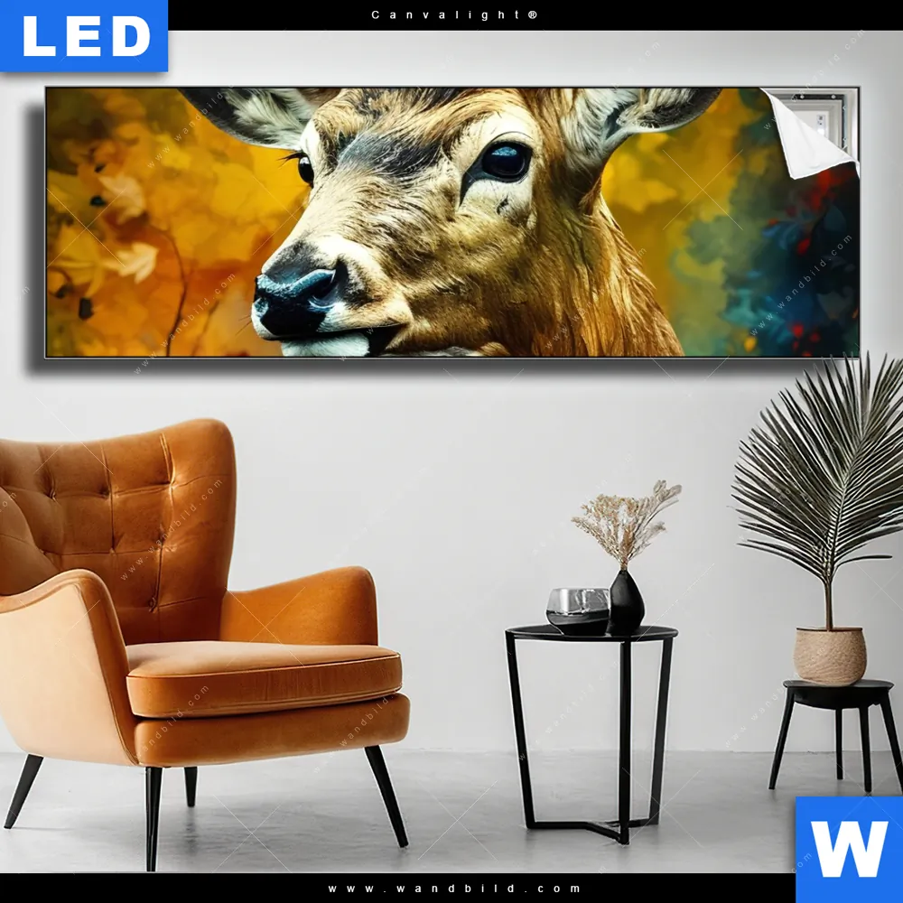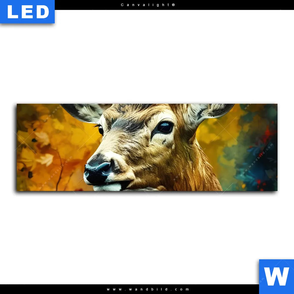 Canvalight® Leuchtbild | Rothirsch im Herbstwald | Panorama