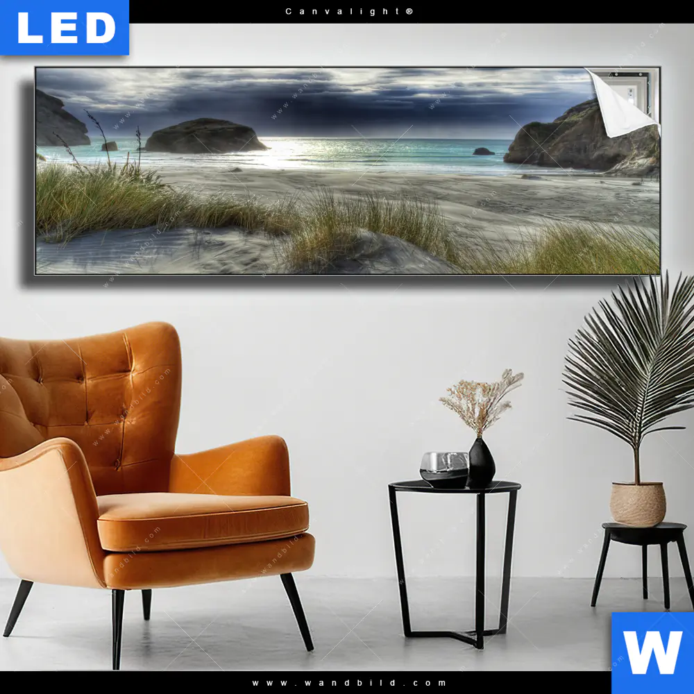 Canvalight® TEX Leuchtbild | Stürmischer Himmel am Strand | Panorama
