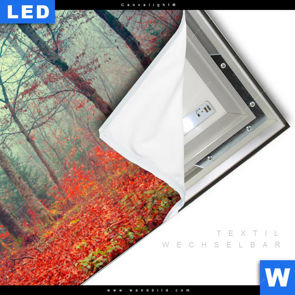 LED-Textilrahmen-Bild mit austauschbarem Landschaften, Wald - Bäume Textil-Druck (Wechselbild)