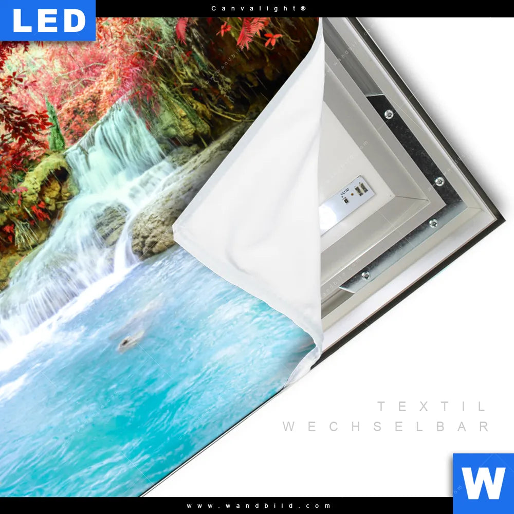 Canvalight® TEX Leuchtbild | Wald & Wasserfall No. 3 | Querformat