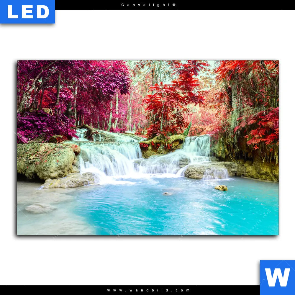 Canvalight® Leuchtbild | Wald & Wasserfall No. 3 | Querformat