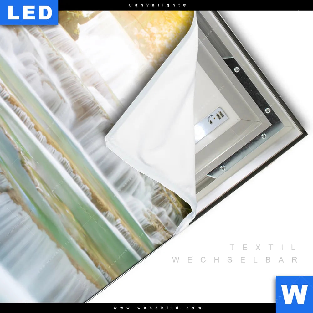 LED-Textilrahmen-Bild mit austauschbarem Landschaften Textil-Druck (Wechselbild)