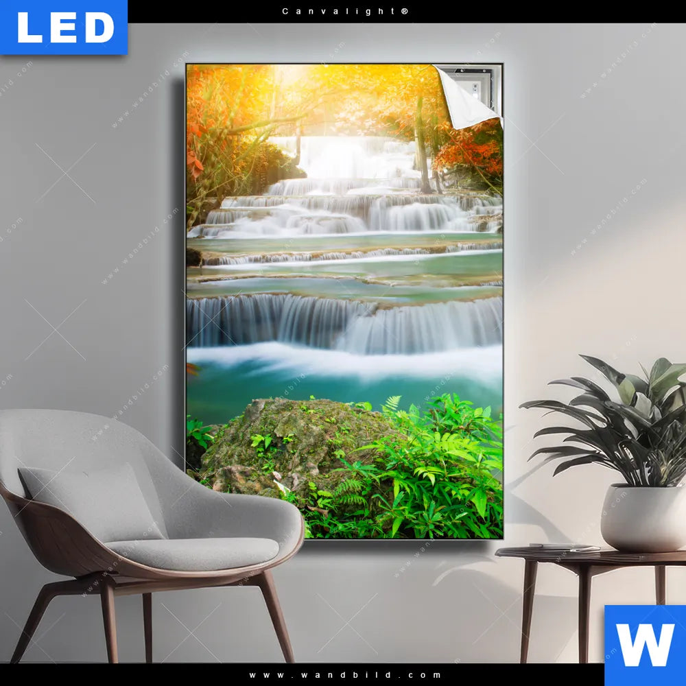 Canvalight® TEX Leuchtbild | Wald & Wasserfall No. 5 | Hochformat