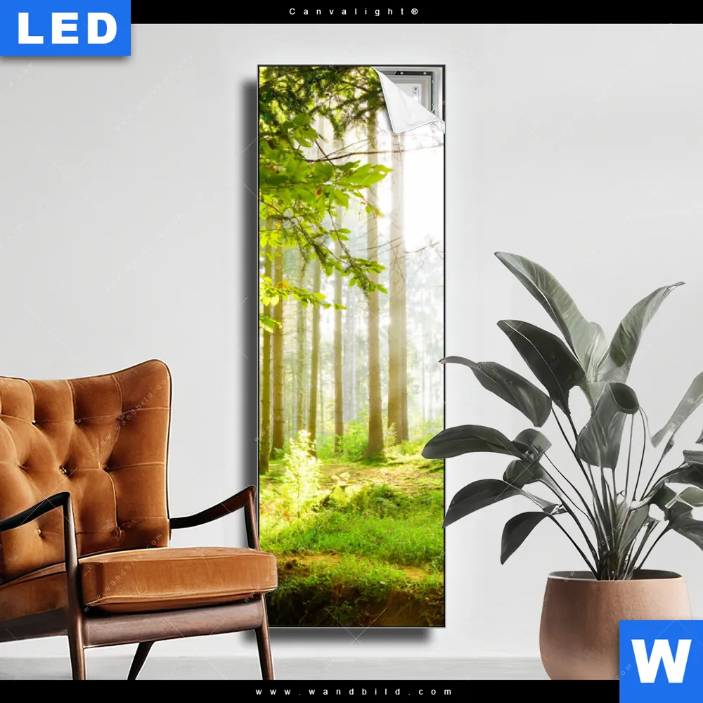 LED-Textilrahmen-Bild mit austauschbarem Landschaften, Wald - Bäume Textil-Druck (Wechselbild)