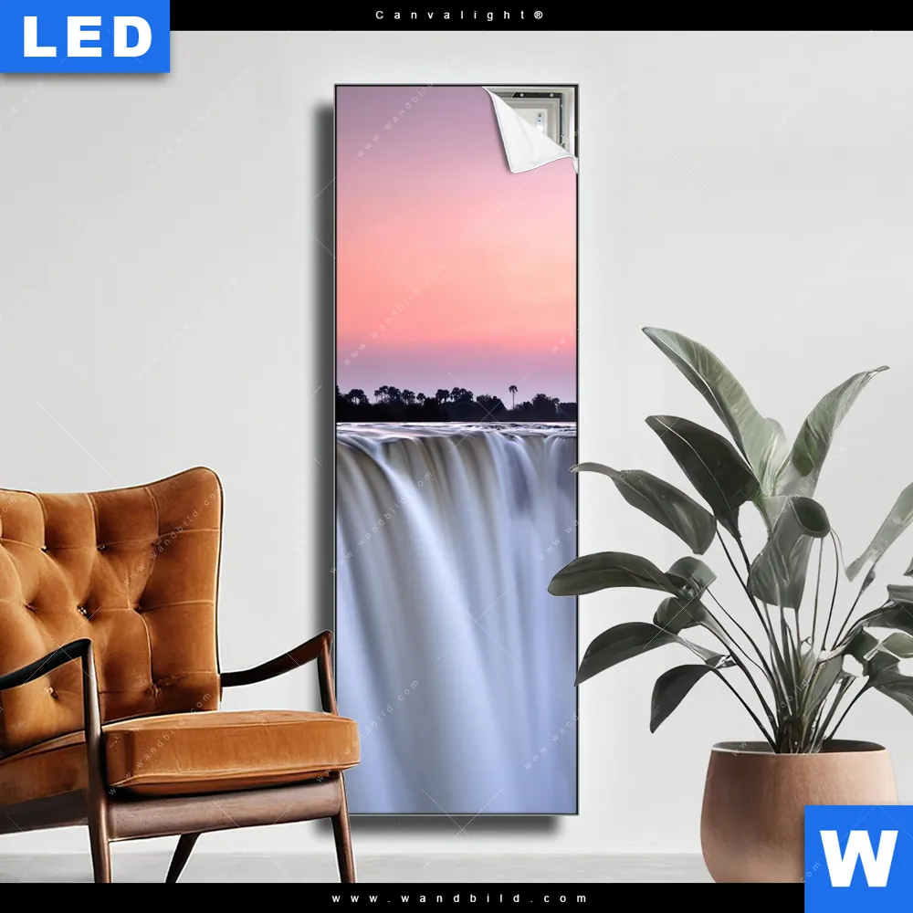 Canvalight® Leuchtbild | Wasserfall bei Abendröte | Schmal