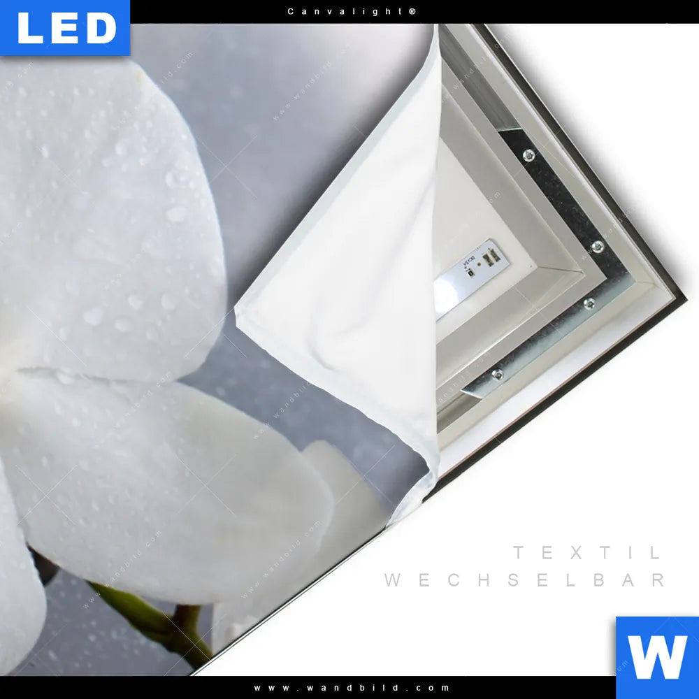 Canvalight® TEX Leuchtbild | Weiße Orchideen | Hochformat