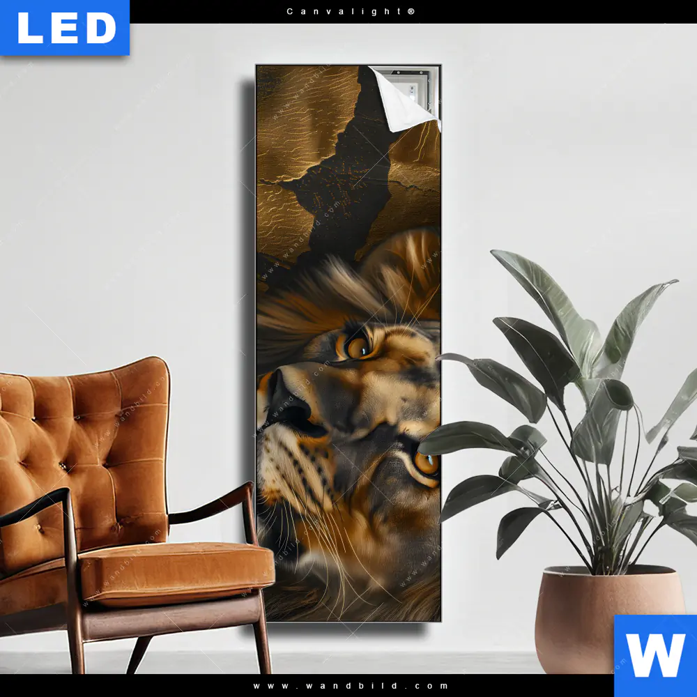 Canvalight® Leuchtbild | Löwenportrait: Kraft und Eleganz | Schmal