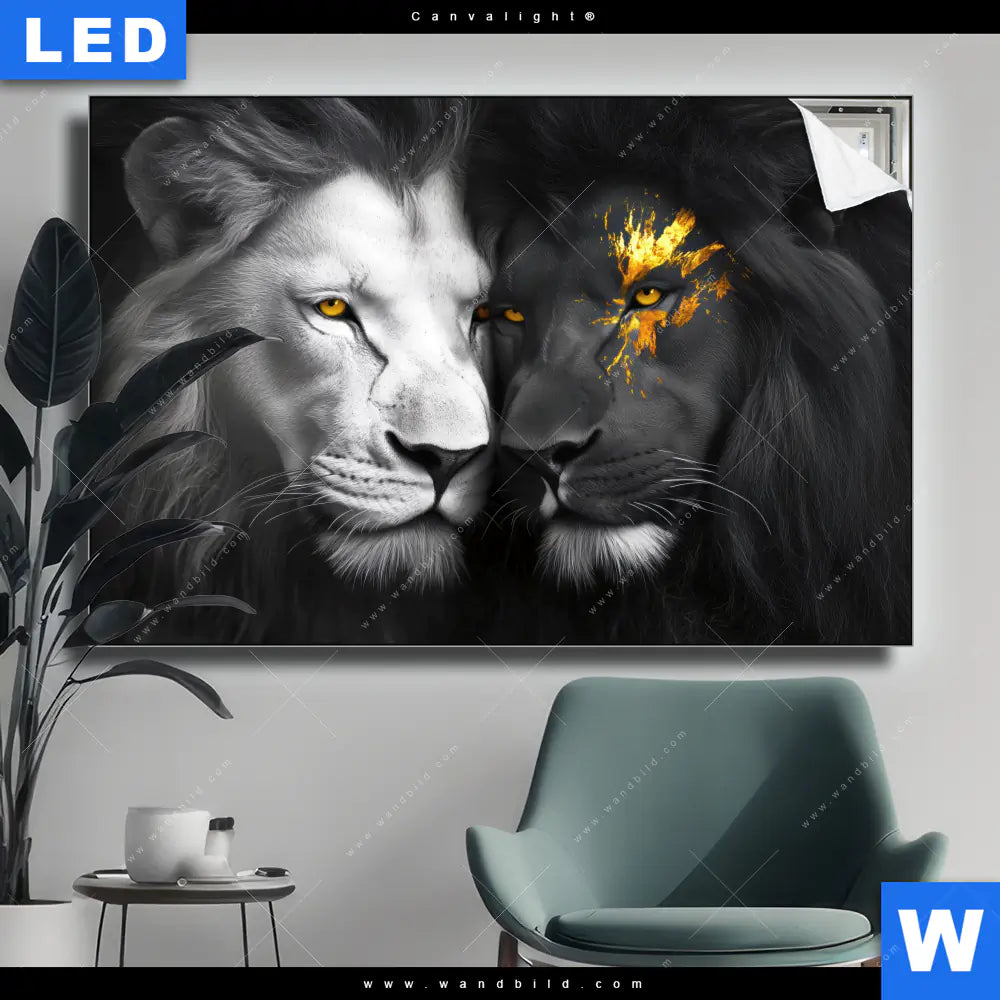 Canvalight® TEX Leuchtbild | Zwei Löwen Schwarz & Weiß | Querformat