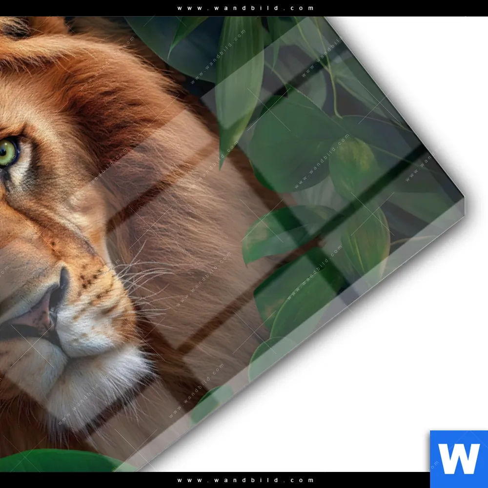 Acrylglasbild | Löwe im grünen Regenwald | Querformat