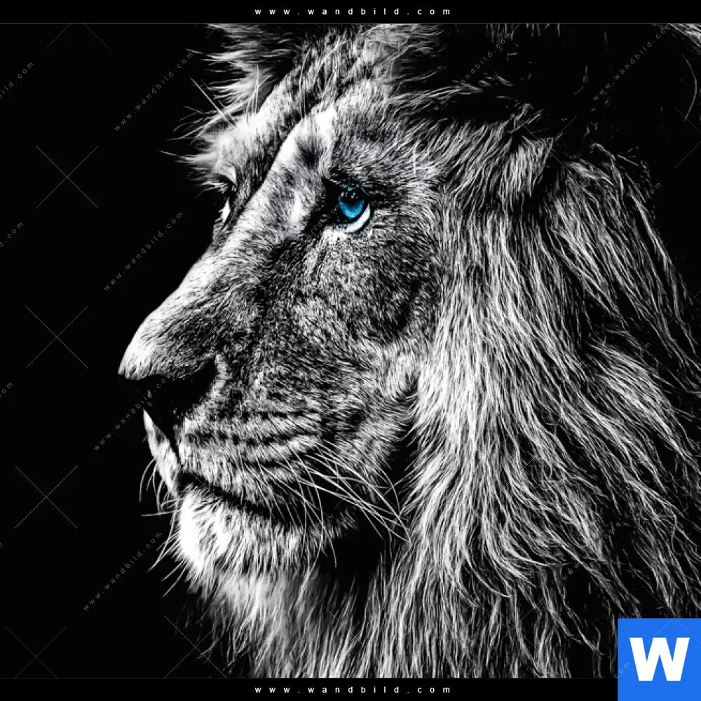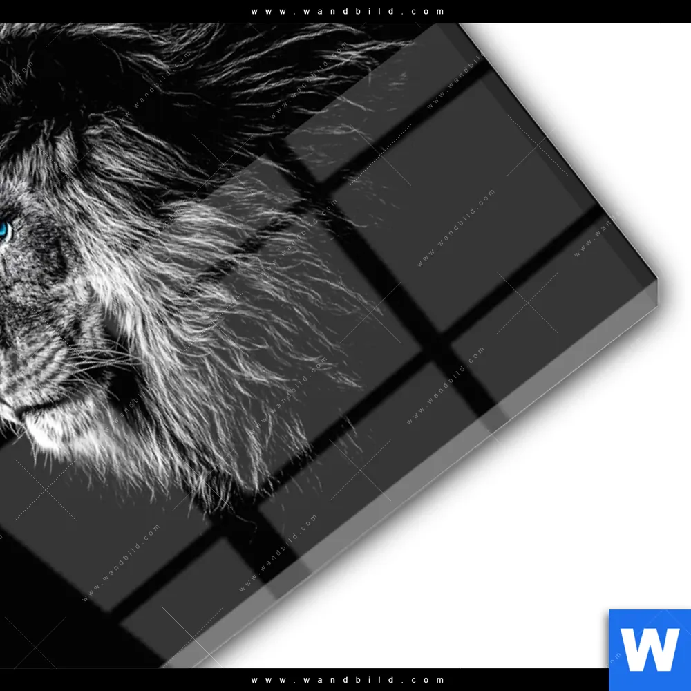 Acrylglasbild | Löwe mit blauen Augen | Querformat
