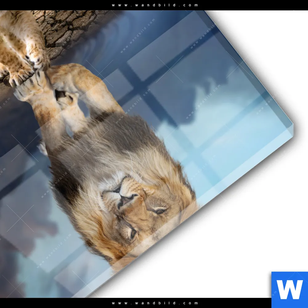 Acrylglasbild | Spiegelbild Löwe & Löwenjunges | Quadrat
