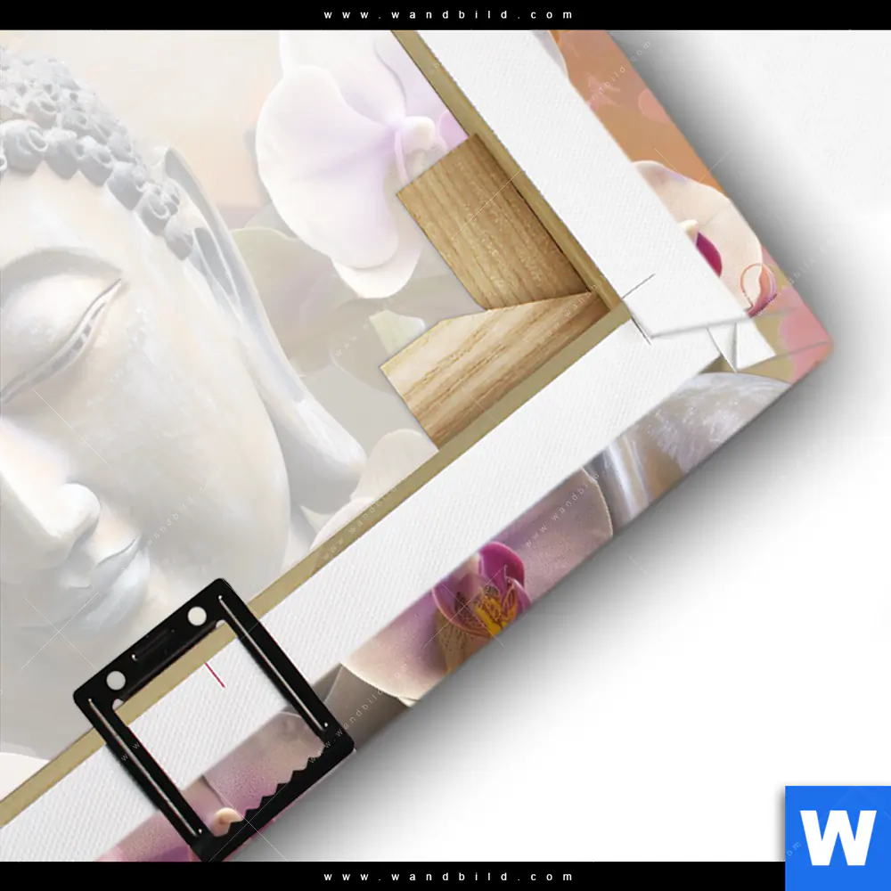 Buddha - Feng Shui, Blumen - Botanik Fotoleinwand aufgespannt auf Holz-Keilrahmen