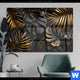 Alu-Dibond Bild | Palmenblätter Schwarz Gold | Panorama