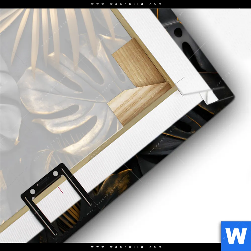 Leinwandbild | Palmenblätter Schwarz Gold | Hochformat