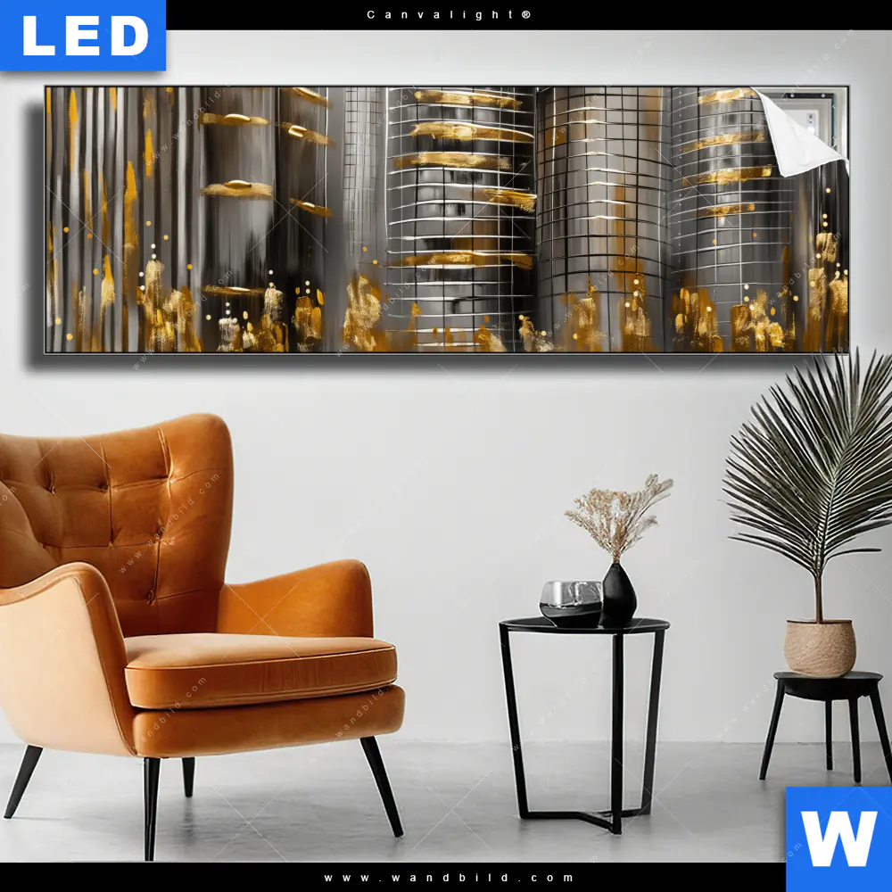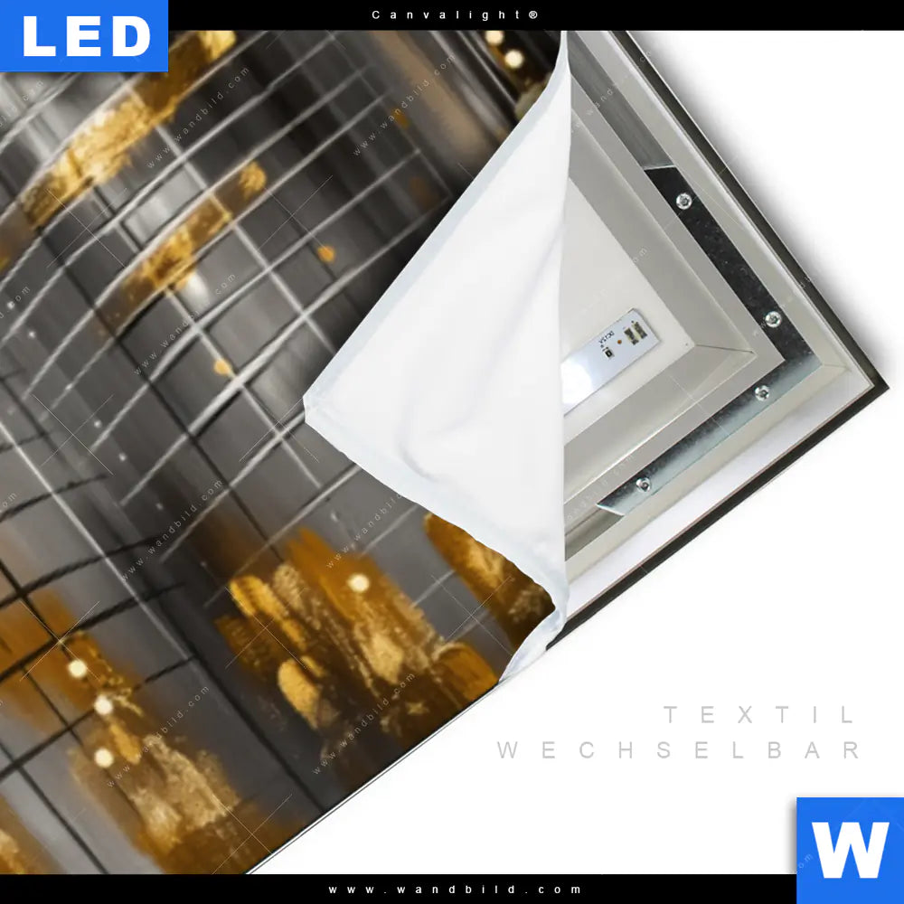 Canvalight® TEX Leuchtbild | Goldene Skyline Vision | Panorama